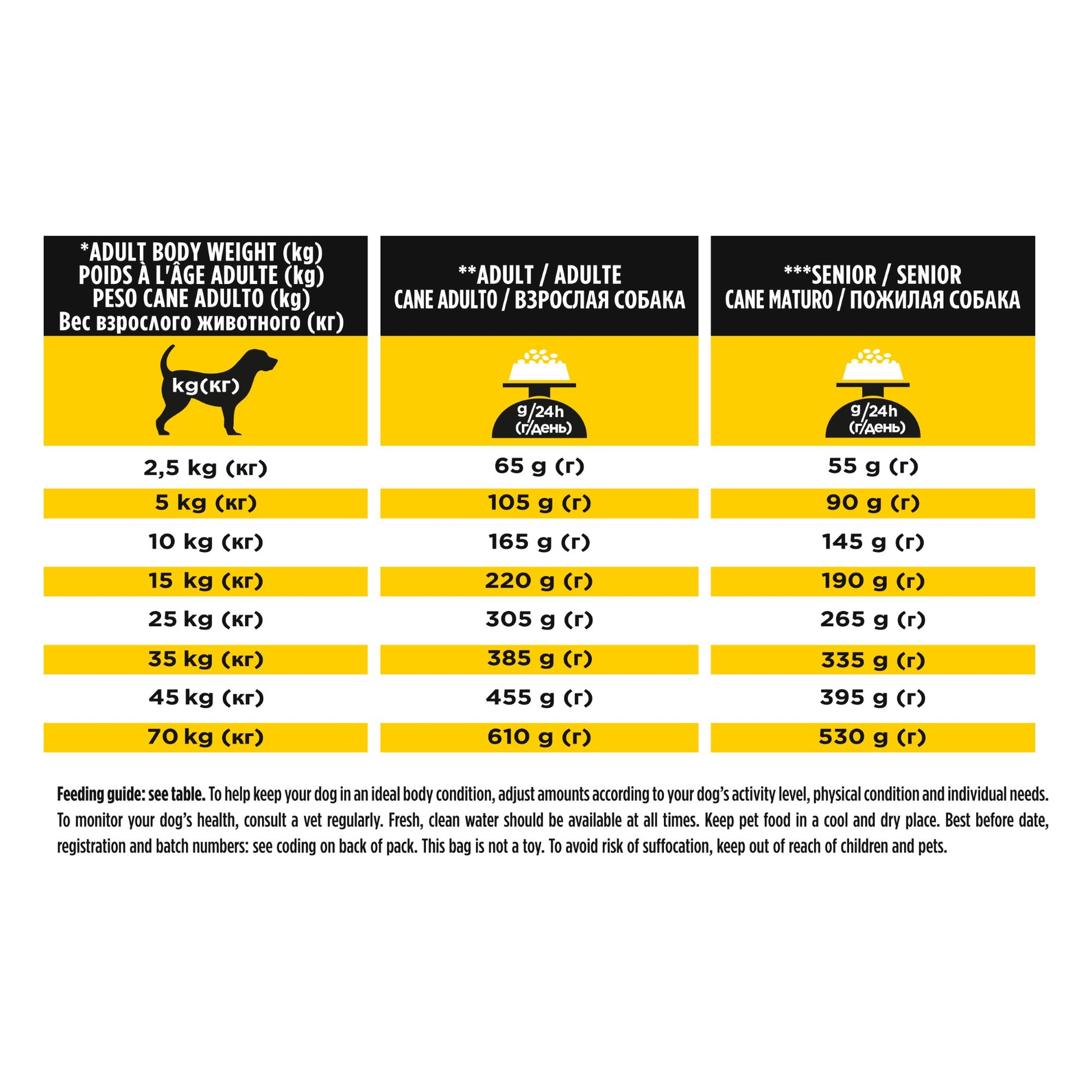 Feed your puppies all of the food they will consume, up to twice the amount of adult dogs, at intervals throughout the day. The food intake required to maintain ideal body condition may vary depending on age, activity and environment. Consequently, the amount of food required for each dog will vary and should be adjusted accordingly.