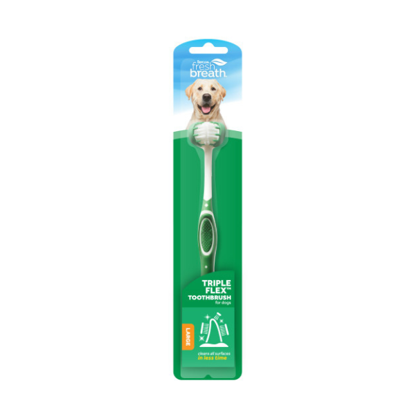 - Brush teeth once daily. Depending on your dogs preference, us the TripleFlex Brush or the Finger Brush. Squeeze a small amount of Brushing Gel for Dogs onto the brush and allow your dog to taste. Reapply and gently brush in a circular motion.